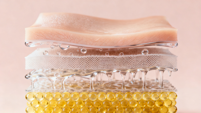 现代皮肤学研究揭示,皮肤的年轻态依赖于两大核心:内部的“骨架”支撑和外部的“水库”锁水。“骨架”就是真皮层中占75%的胶原蛋白,它像一张紧实的弹簧床垫,负责撑起皮肤的紧致与弹性。而“水库”则是以玻尿酸为代表的保湿成分,它们负责锁住水分,让皮肤看起来饱满透亮。单方面补充其中一个,就像只维修床垫的弹簧却不补充海绵,床面依然会凹凸不平;或者只往海绵里加水,底下的弹簧却已老化断裂,支撑力无从谈起。